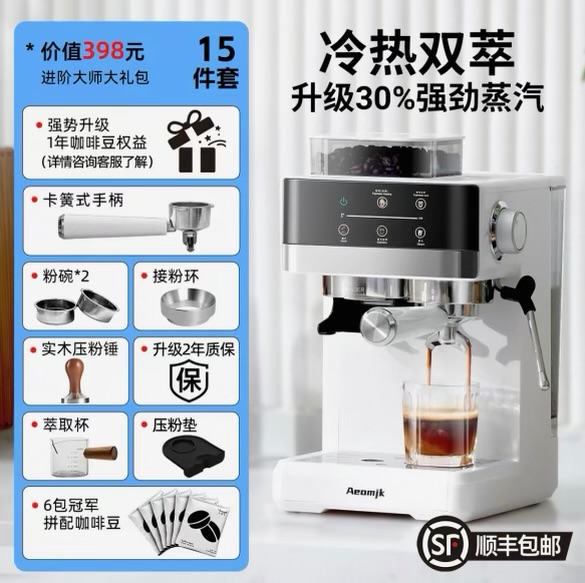 【补贴15%】艾摩客Aeomjk/CM5520冷热双萃咖啡机研磨一体家用小型