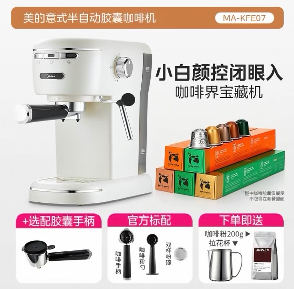 美的胶囊咖啡机家用小型半自动意式萃取打奶泡迷你一体送礼物E07
