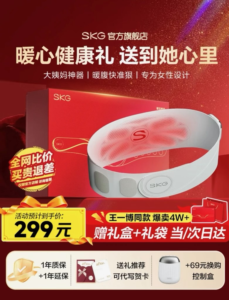 SKG暖宫腰带大姨妈神器腰部热敷暖宝宝暖腹痛经生理期舒缓贴便携护腰带生日礼物实用送女友老婆闺蜜 【心意限定礼盒】K1经期暖腹护腰