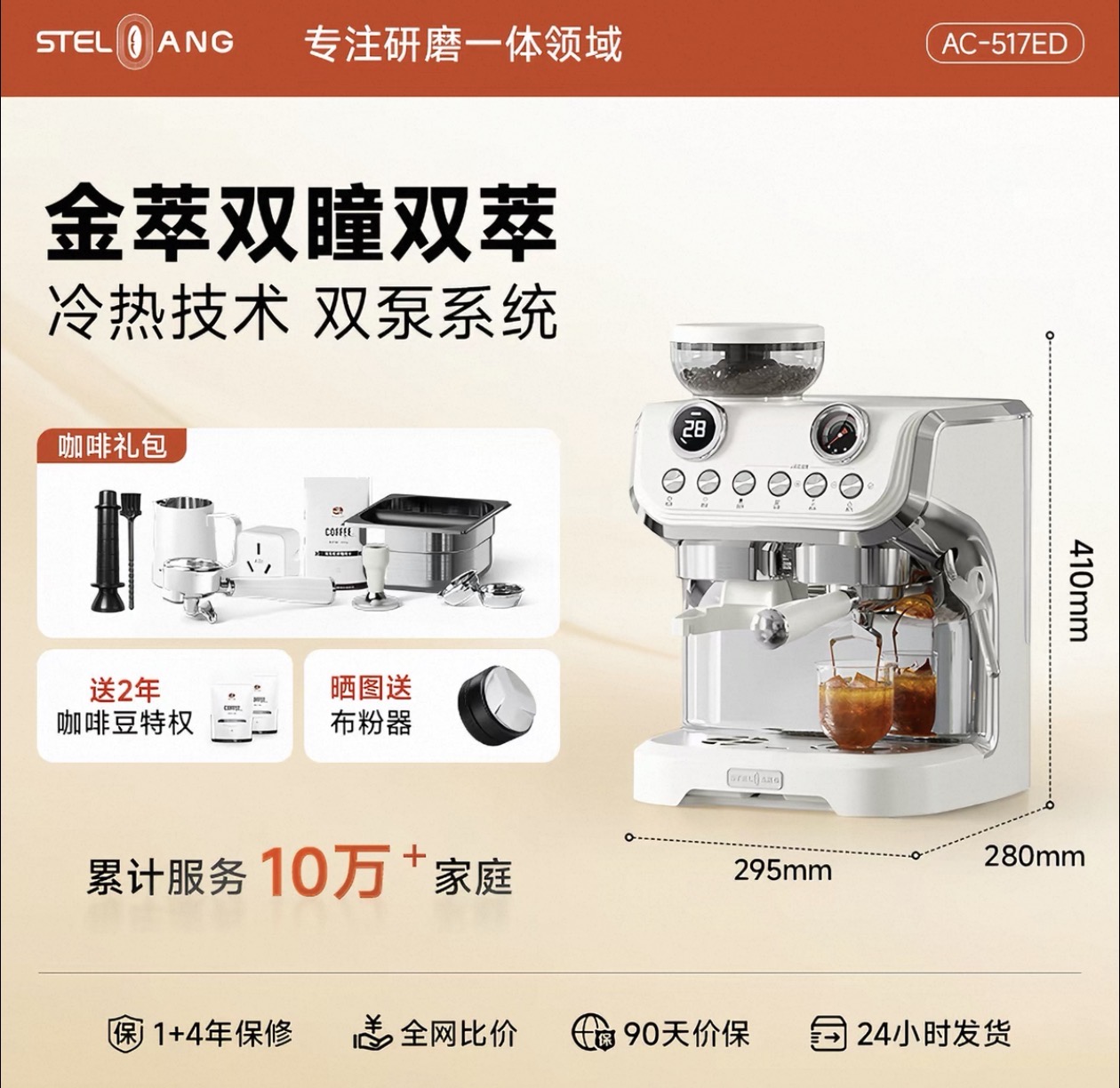 【政府补贴】雪特朗AC-517ED咖啡机意式家用研磨一体机小型半自动